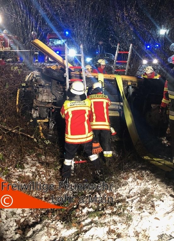 Die Feuerwehr Lohr sicherte die Einsatzstelle ab und unterstützte die Feuerwehr Partenstein bei der Menschenrettung.