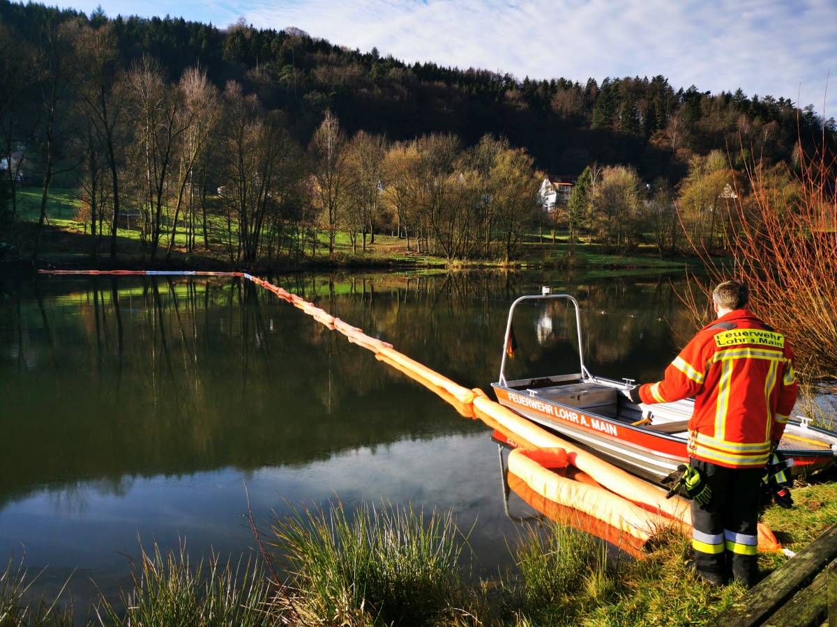 Die Feuerwehr Lohr brachte mittels Boot Ölschlengel auf dem See und dessen Zulauf an. Zur weiteren Materialunterstützung wurde die Feuerwehr Marktheidenfeld nachalarmiert. Diese brachte einen Öl-Wringer zum Einsatz.