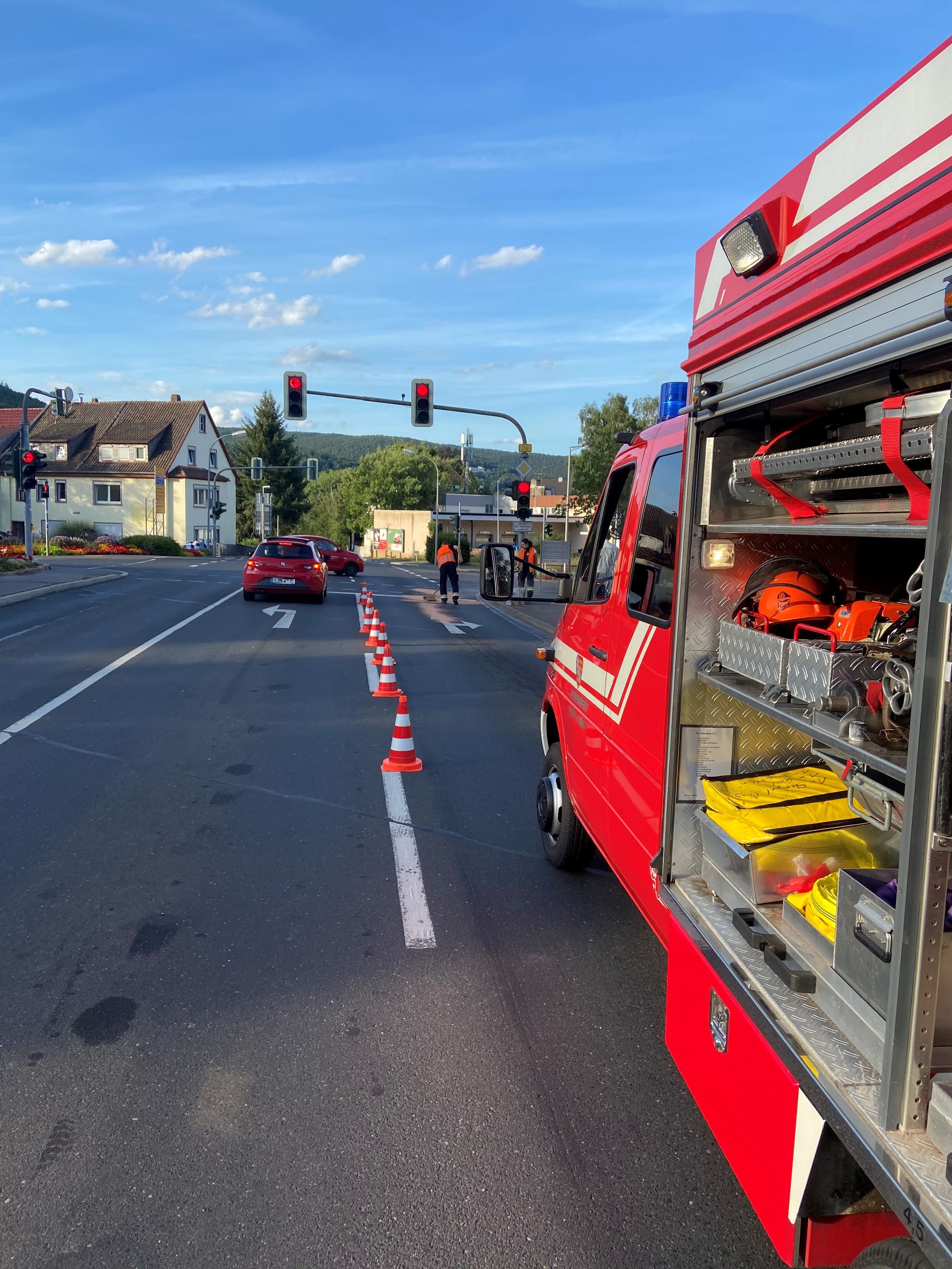 Bereits auf der Anfahrt zur ersten Einsatzstelle konnte eine weitere Verunreinigung auf der B26 und einer Bushaltestelle in der Ruppertshüttener Straße ausfindig gemacht werden. Hier handelte es sich jedoch um Motoröl.