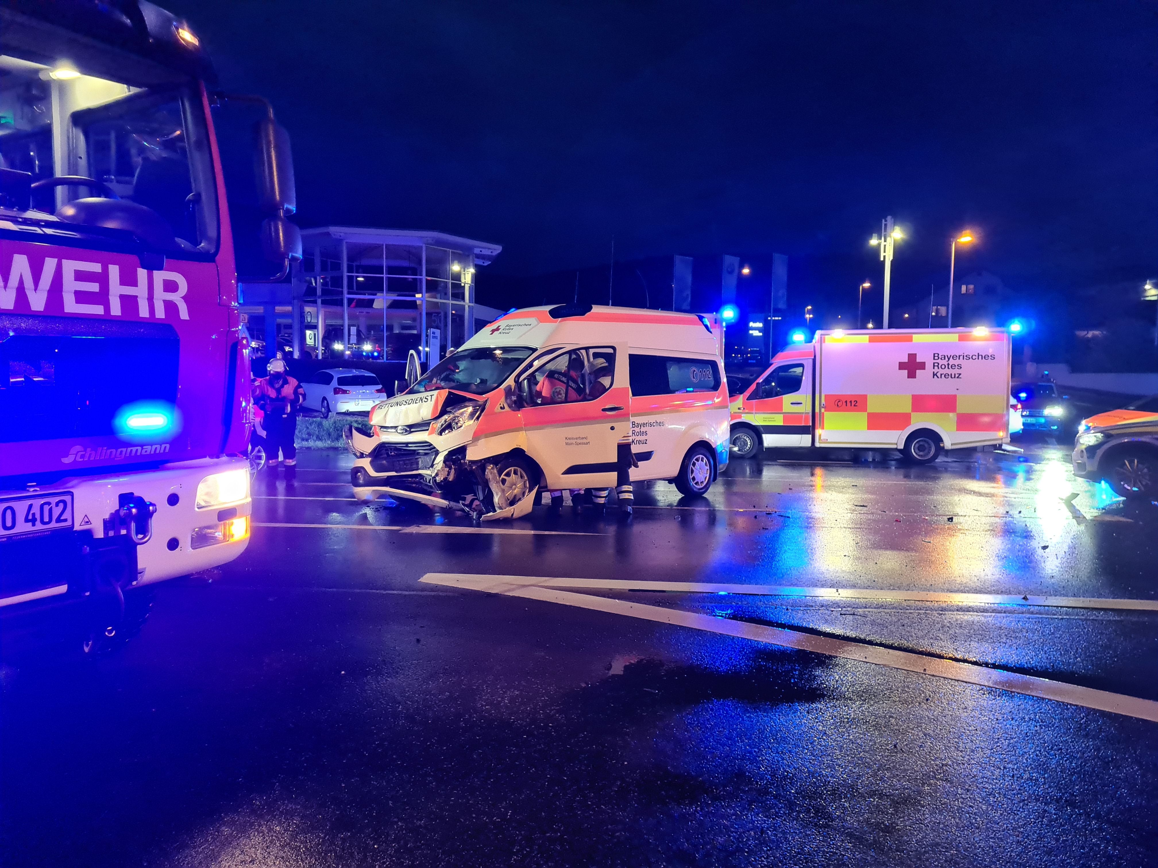 Ausgerückt mit dem Rüstzug stellte sich folgende Lage dar: Ein Krankentransportwagen KTW war frontal in die Fahrerseite eines kreuzenden BMW´s gefahren. Die insgesamt drei betroffenen Personen wurden durch den Rettungsdienst versorgt. Unterstützend wurde der Lohrer Feuerwehrarzt und Notarzt dem Roten Kreuz unterstellt.