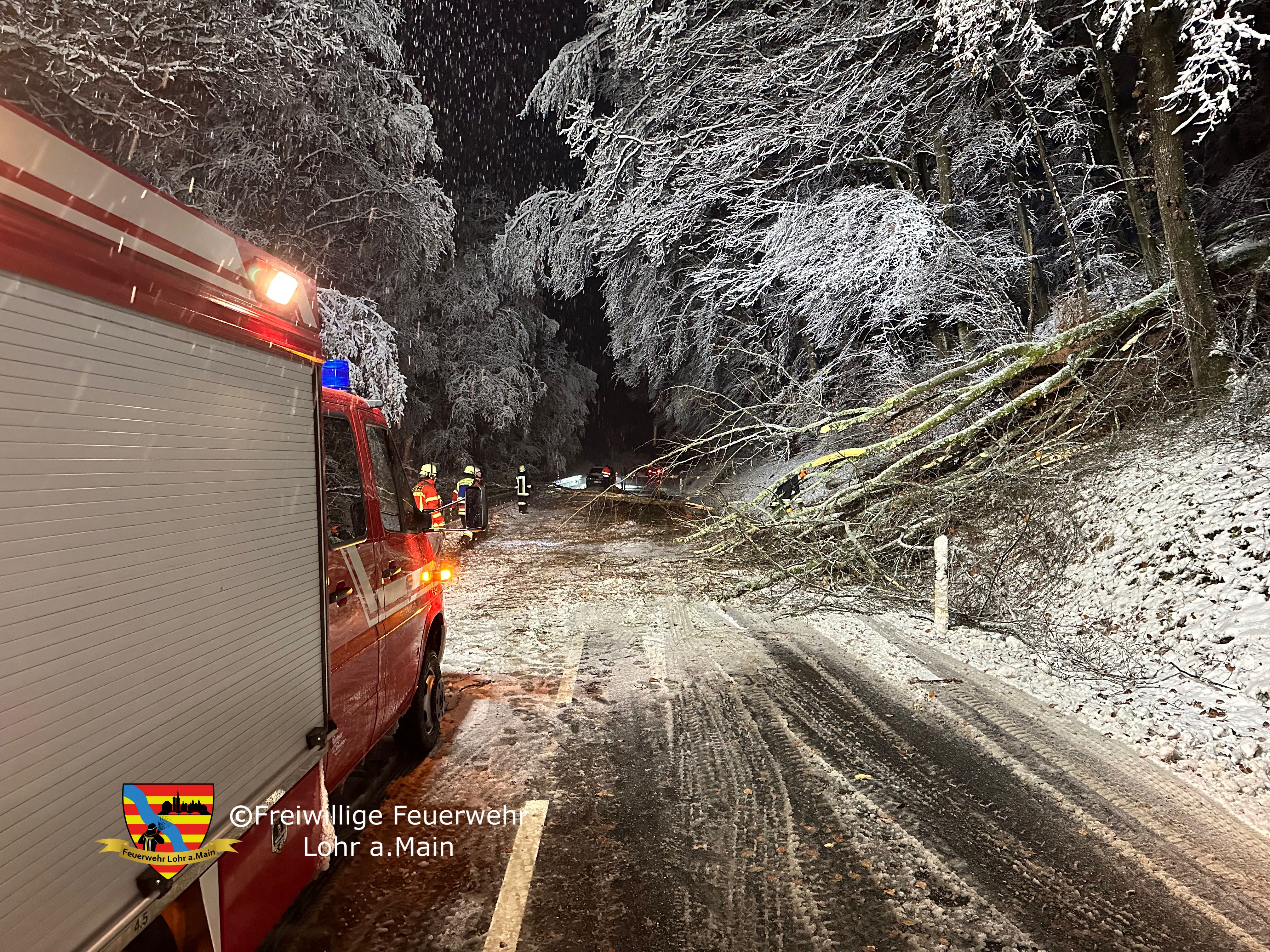 Die Feuerwehr Lohr wurde auf die B26 Richtung Rechtenbach alarmiert. Hier waren insgesamt 3 Bäume umgefallen und blockierten diese teilweise durch in die Fahrbahn ragende Äste. Auf der weiteren Strecke blockierten zwei weitere Bäume die Fahrbahn, wurden jedoch bereits vom Straßenbaulastträger beseitigt, sodass das eingesetzte Feuerwehrfahrzeug die Arbeiten gegen fließenden Verkehr absicherte.
