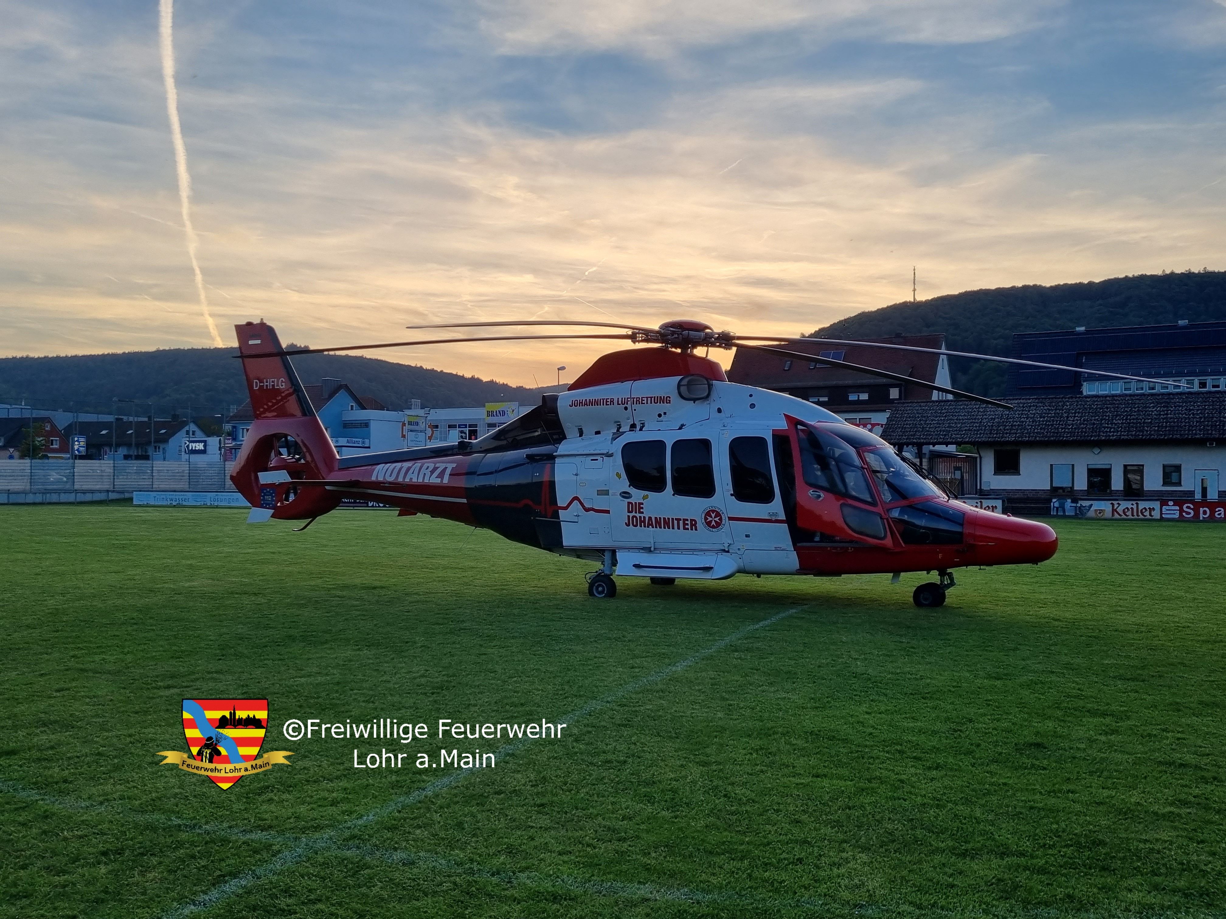 Die Feuerwehr Lohr wurde zu einer Hubschrauberlandung auf dem TSV-Gelände in die Jahnstraße alarmiert, da aufgrund der Baumaßnahmen am Krankenhaus keine Landungen mehr möglich sind.