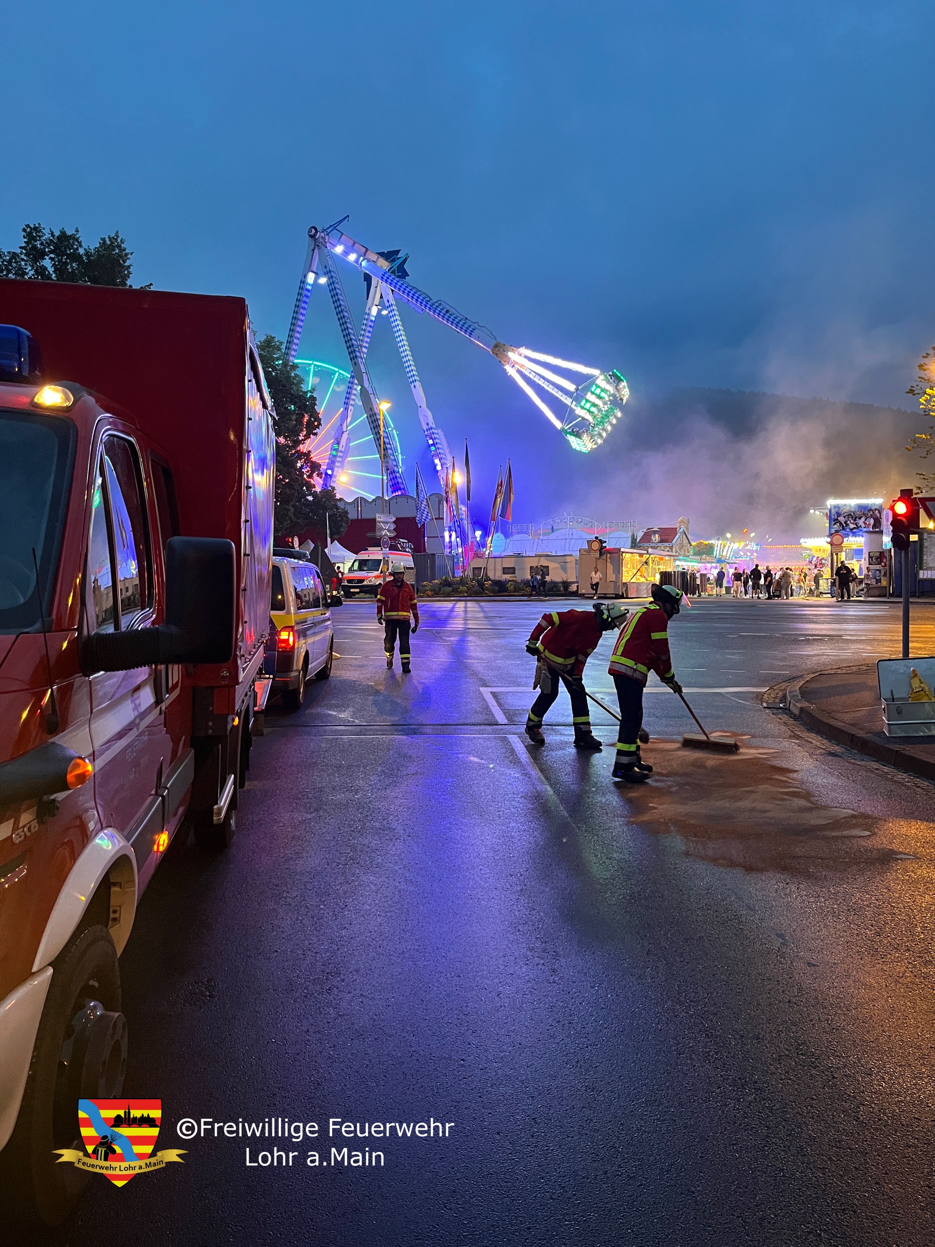 Die Feuerwehr Lohr wurde in die Fischergasse alarmiert, da hier eine Verunreinigung durch Betriebsmittel stattgefunden hatte. Die Straße wurde beschildert und ein größerer Fleck mit Bindemittel abgestreut.