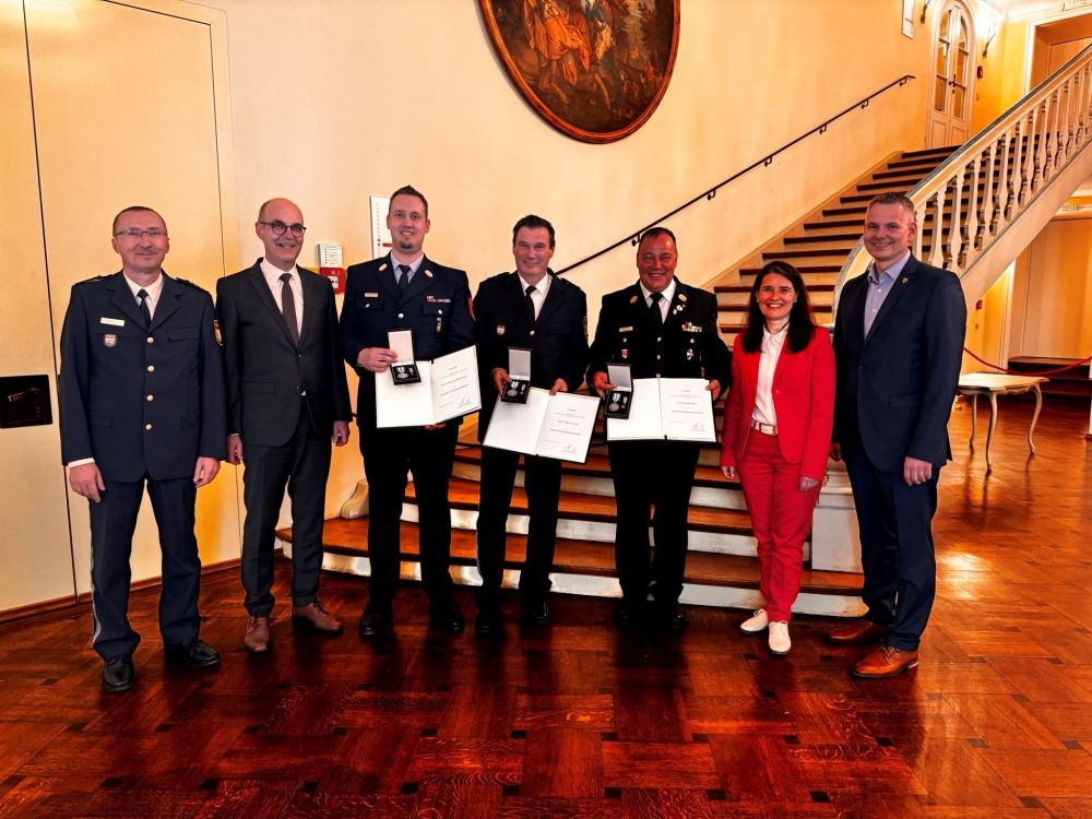 Am 13.12.2023 konnte eine Person aus dem knapp über 0°C kalten Main durch das schnelle und beherzte Eingreifen unseres Kommandanten Sebastian Mademann, Polizist Volker Fischer und Kreisbrandinspektor Harald Merz gerettet werden. Hierfür hat das Trio am Donnerstag, 02.05.2024 in der Staatskanzlei in München die Bayerische Rettungsmedaille verliehen bekommen.