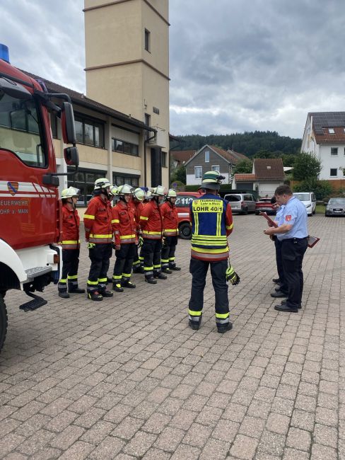 Am Freitag den 05.07.2024 trafen sich 12 Kameraden der Freiwilligen Feuerwehr Lohr auf dem Hof der Feuerwache zur Abnahme der Leistungsprüfung „Die Gruppe im Hilfeleistungseinsatz“.