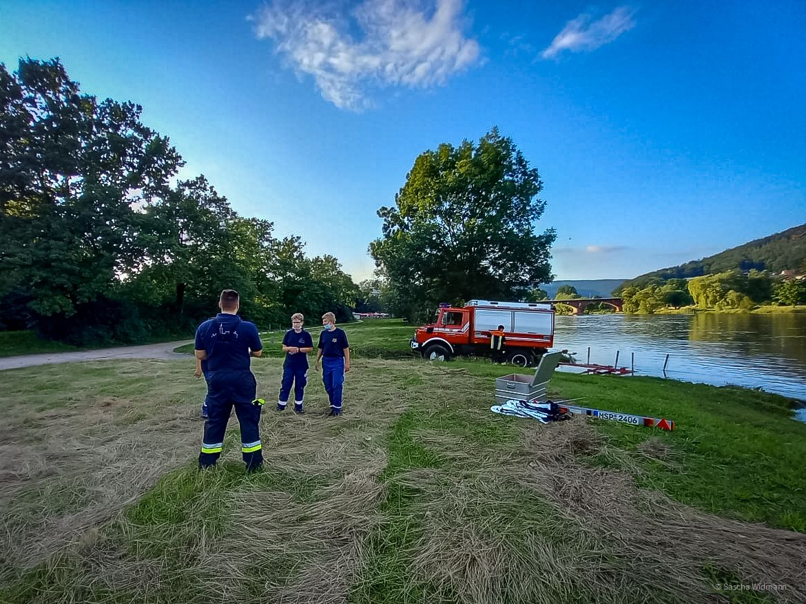 Wir haben gemeinsam den Anhänger mit Boot an den RW (Rüstwagen) gehängt und sind anschließend mit RW und dem MTW (Mannschaftstransportwagen) an den Main gefahren.
