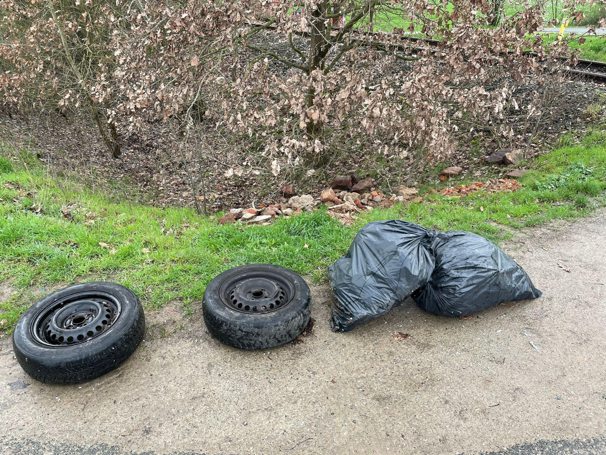 U.a. 2 Autoreifen und 2 volle abgelegte Müllsäcke.