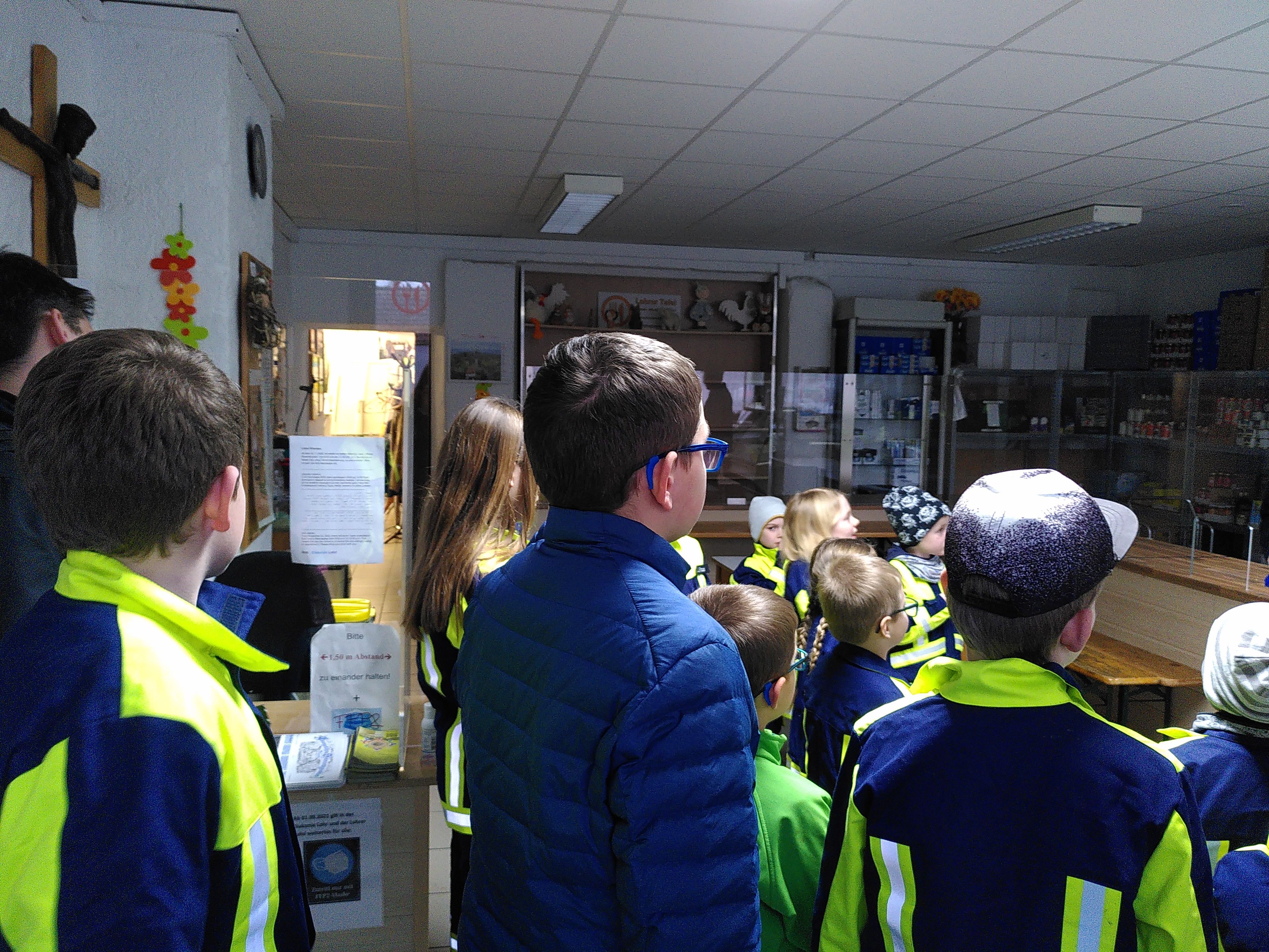 Die Kinderfeuerwehr durfte nicht nur einen Blick in den Laden werfen, sondern auch das Lager begutachten. Herr Donath erzählte uns auch noch von seinem schönsten und seinem ergreifendsten Erlebnis seit es die Lohrer Tafel gibt. Das schönste Erlebnis war ein Gedicht, das eine Klientin als Dankeschön an das ganze Team der Lohrer Tafel schrieb, da sie so dankbar für die Unterstützung war. Das ergreifendste Erlebnis waren die weinenden Frauen aus der Ukraine, die letztes Jahr auch nach Lohr kamen und die schlimmen Geschehnisse in ihrer Heimat nicht begreifen konnten. Es war ein sehr interessanter Einblick in die Arbeit der Lohrer Tafel und für viele Kinder auch neu und zunächst schwer vorstellbar, dass es auch bei uns so viele arme Menschen gibt.