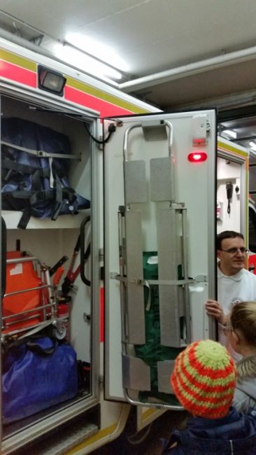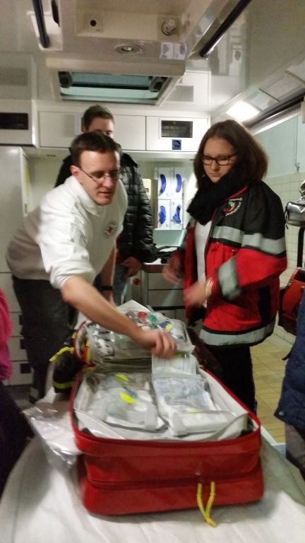 Unser Patient wurde schließlich entlassen und weiter ging es damit, die Schubladen des Rettungswagens unter die Lupe zu nehmen.