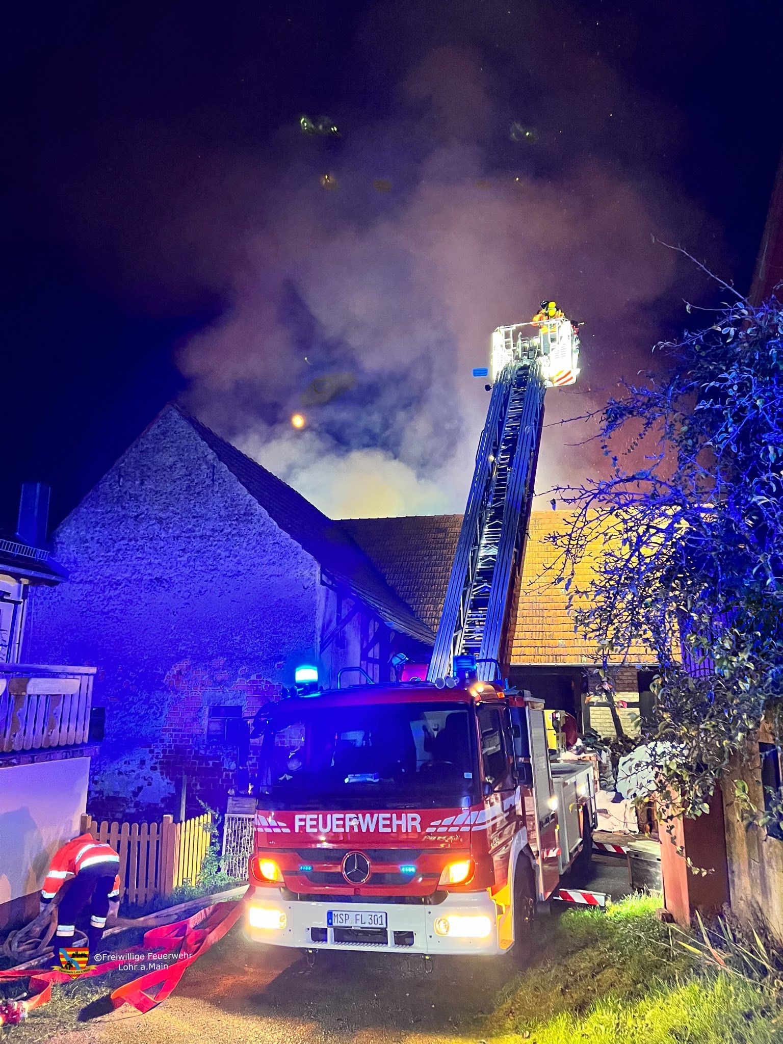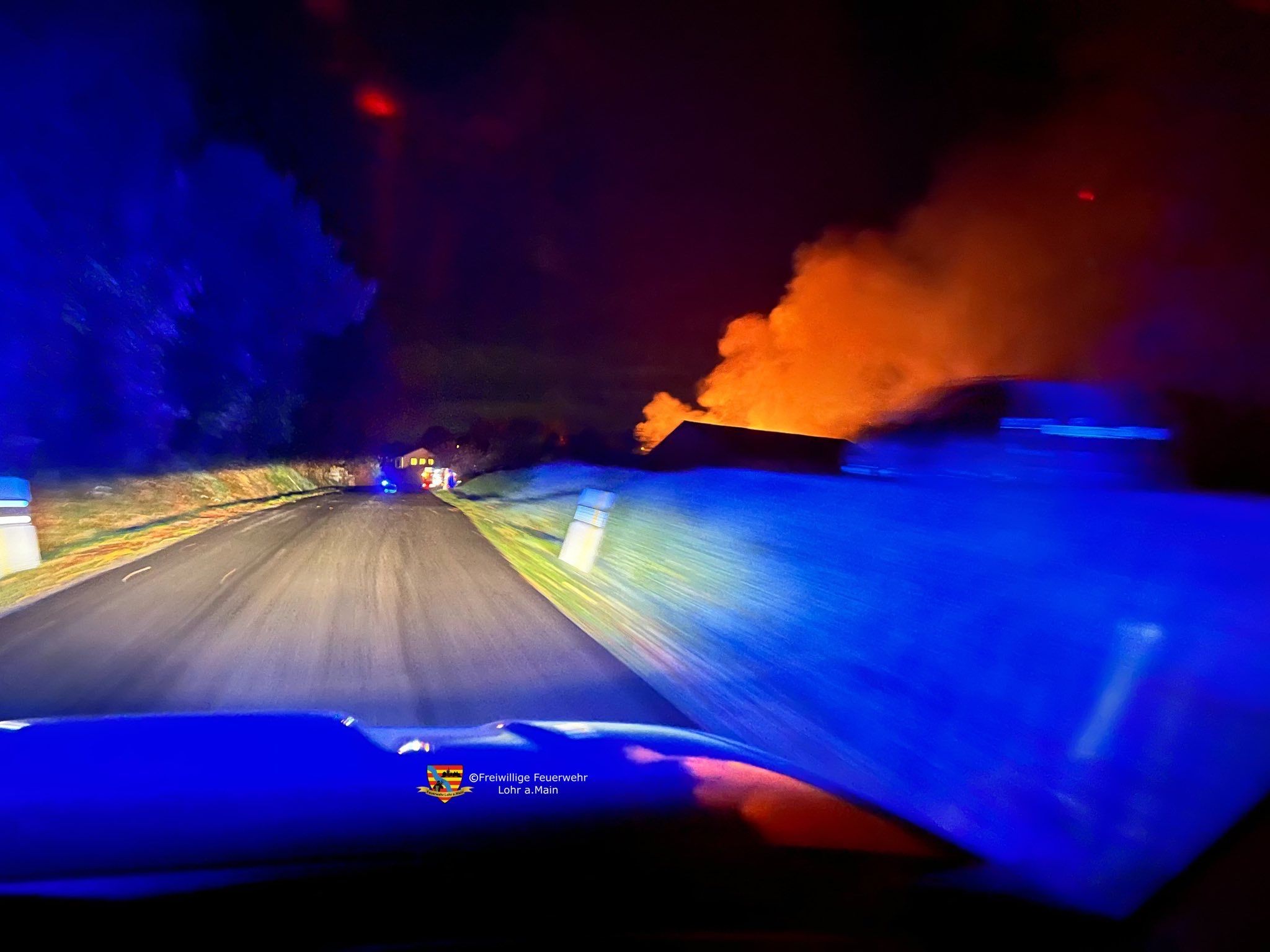 Durch die Alarmstufenerhöhung und Anforderung weiterer Drehleitern wurden wir um 19:11 Uhr in den Gemündener Ortsteil Massenbuch zur Unterstützung beim dortigen Sägewerkbrand alarmiert.