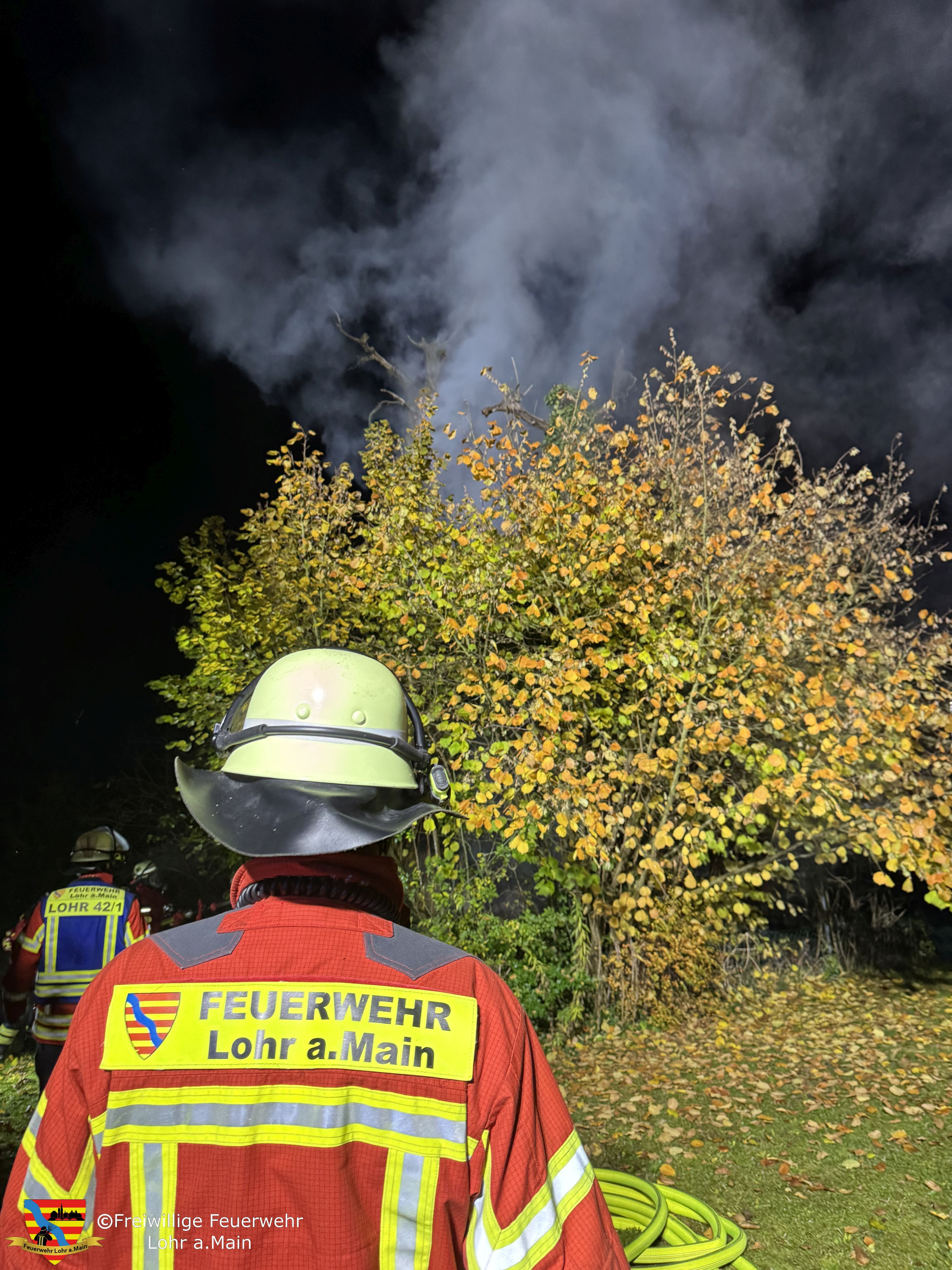 Ausgerückt zu einem Brand am Gebäude, in Sendelbach, sind aus Lohr die Fahrzeuge: Kommandowagen, Hilfeleistungslöschgruppenfahrzeug 10, Hilfeleistungslöschgruppenfahrzeug 20/16, Drehleiter und Einsatzleitwagen. Ebenfalls ausgerückt sind das mittlere Löschfahrzeug aus Steinbach und das Tragkraftspritzenfahrzeug aus Pflochsbach.