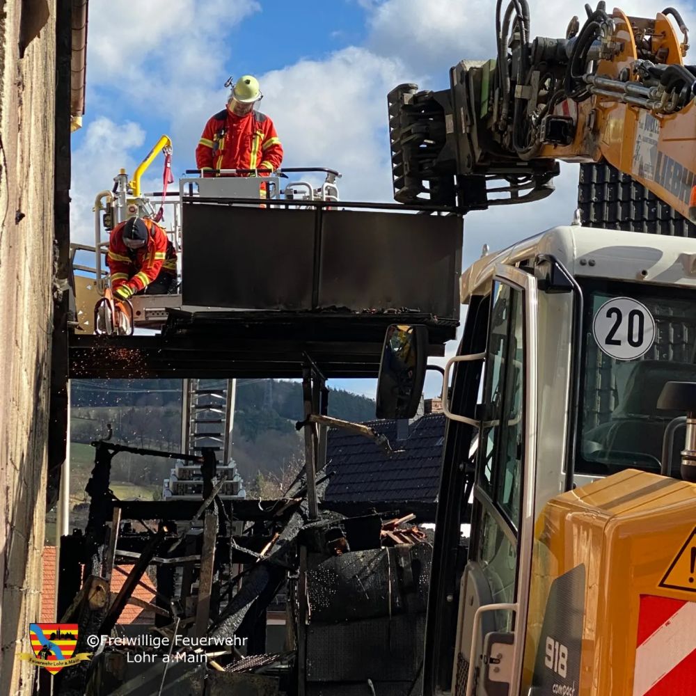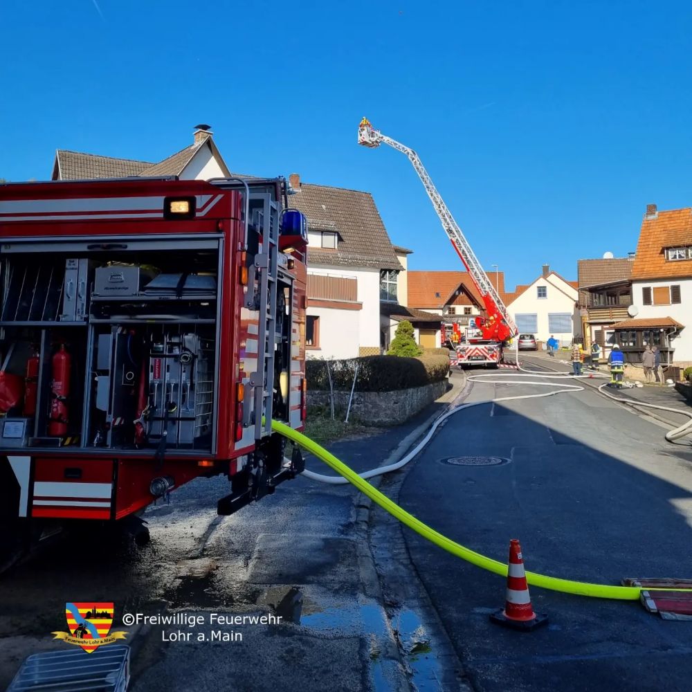 Die Feuerwehren wurden um 08:16 Uhr zu einem in Vollbrand stehenden Nebengebäude nach Neuhütten alarmiert. Hier unterstützten wir die Löscharbeiten mit unserer Drehleiter und einem Löschgruppenfahrzeug.