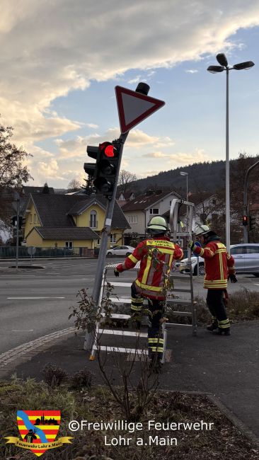 Zur Amtshillfe für die Polizei zur Sicherung einer Verkehrsampel wurde die Feuerwehr Lohr alarmiert und rückte aus mit Vorausrüstwagen und Kommandowagen.