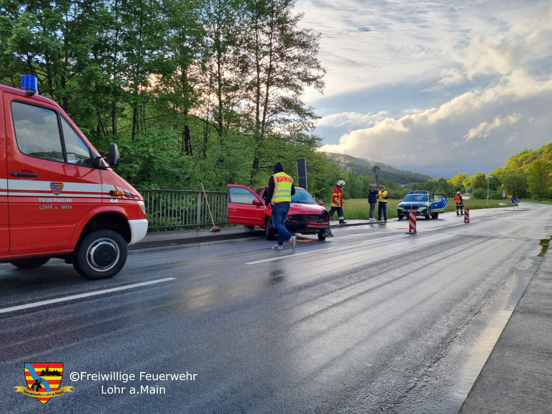 Die Feuerwehr Lohr wurde zu auslaufenden Betriebsstoffen auf die Partensteiner Straße alarmiert. Ursache hierfür war ein vorangegangener Alleinunfall eines PKW`s. Dieser war gegen ein Brückengeländer geprallt, woraufhin Kühlerflüssigkeit austrat.