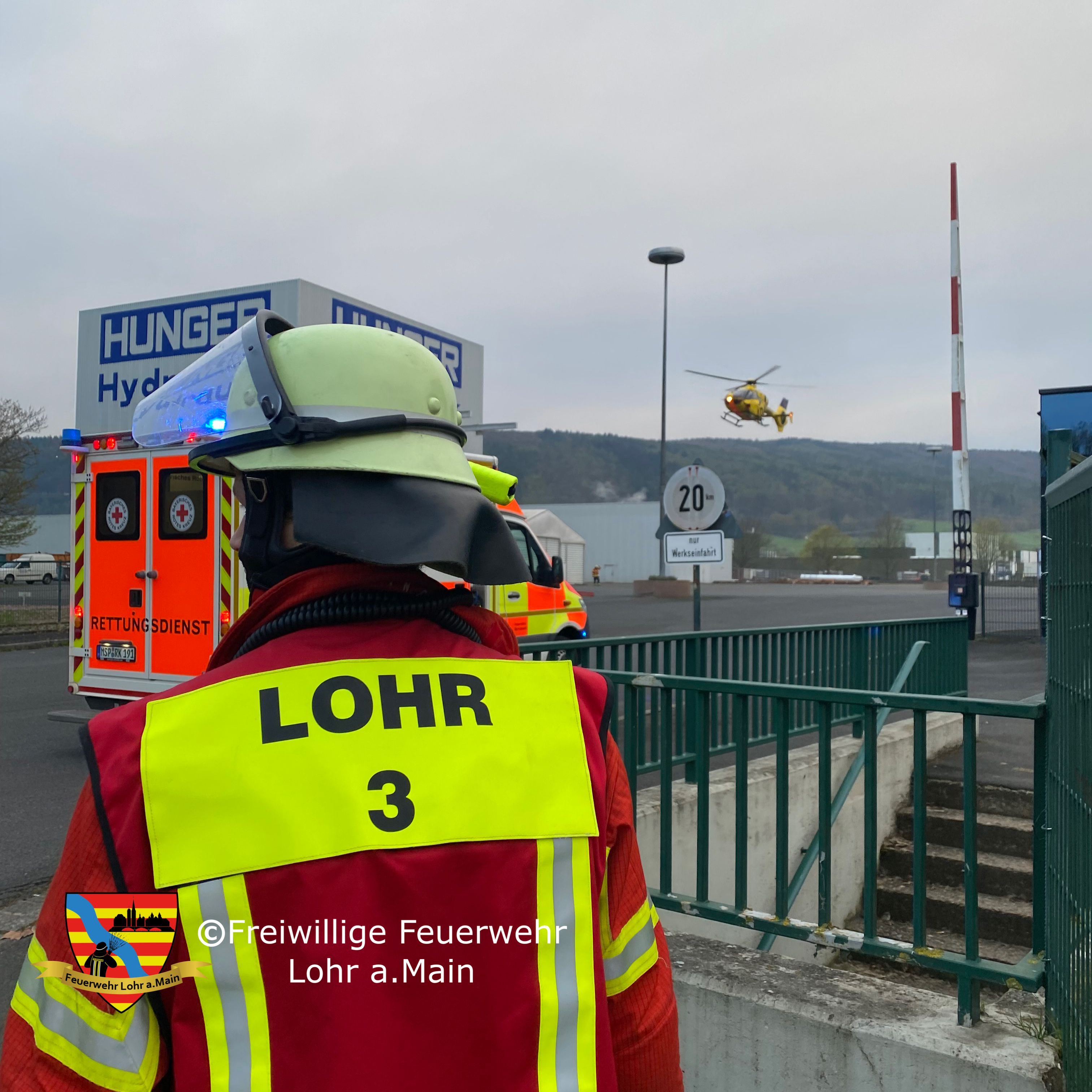 Dazu wurde durch die Feuerwehr Rodenbach unterstützt, die Staatsstraße 2315 für die Dauer des Einsatzes voll gesperrt. Der Brandschutz wurde sichergestellt und ein Landeplatz auf dem Gelände der Firma Hunger Hydraulik für den ebenfalls alarmierten Rettungshubschrauber,abgesichert. Vielen Dank an die Firma Hunger für die unkomplizierte Zusammenarbeit.