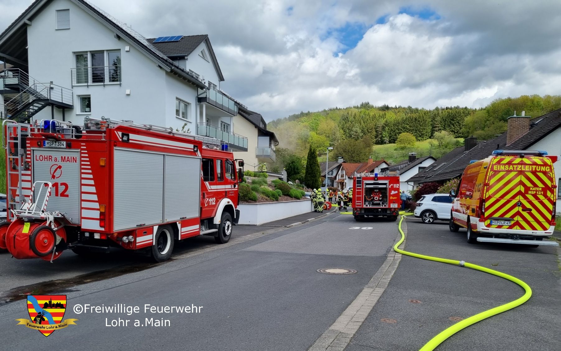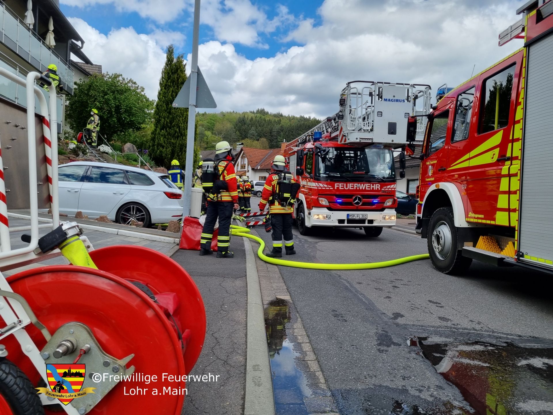 Die Feuerwehr Lohr wurde mit der Drehleiter und Atemschutz zu Unterstützung der Feuerwehr Frammersbach alarmiert. Es wurde ein Sicherheitstrupp sowie die Drehleiter vor dem Objekt in Stellung gebracht.