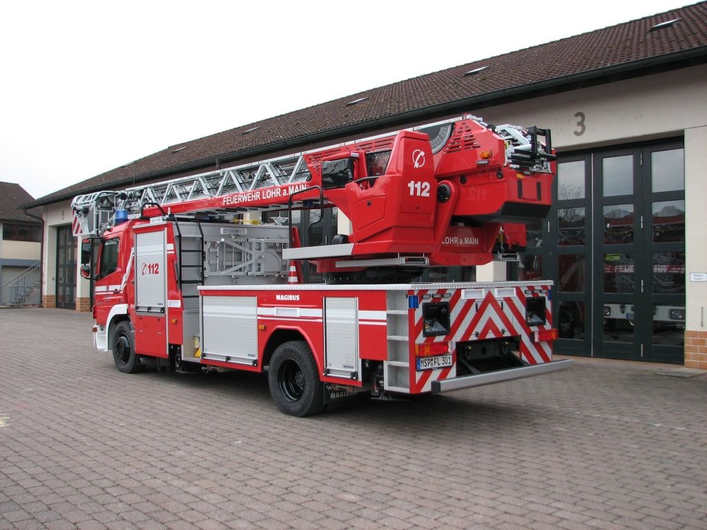 Ausrüstung: Vierteiliger Leitersatz mit Einzelauszug und Gelenkarm. Leiterlänge 30 m, Nennrettungshöhe 23 m bei 12 m Ausladung. Rettungskorb belastbar bis 400kg. Videokameras am Korb und Knickgelenk. Umfangreiche Beleuchtung LED-Ausführung. Stromerzeuger, elektr. Motorsäge, Rettungssäge, Absturzsicherungssatz, Abseilgerät, 2 Atemschutzgeräte, Rettungswanne, Tragenrettungsset Safety-Peak, Schwerlastkrankentragehalterung bis 270 kg Belastbarkeit, Tierrettungsgeschirr, elektrobetriebener Überdrucklüfter, Wasserwerfer (Wasserabgabe 600 bis 2500 Liter/Min.)