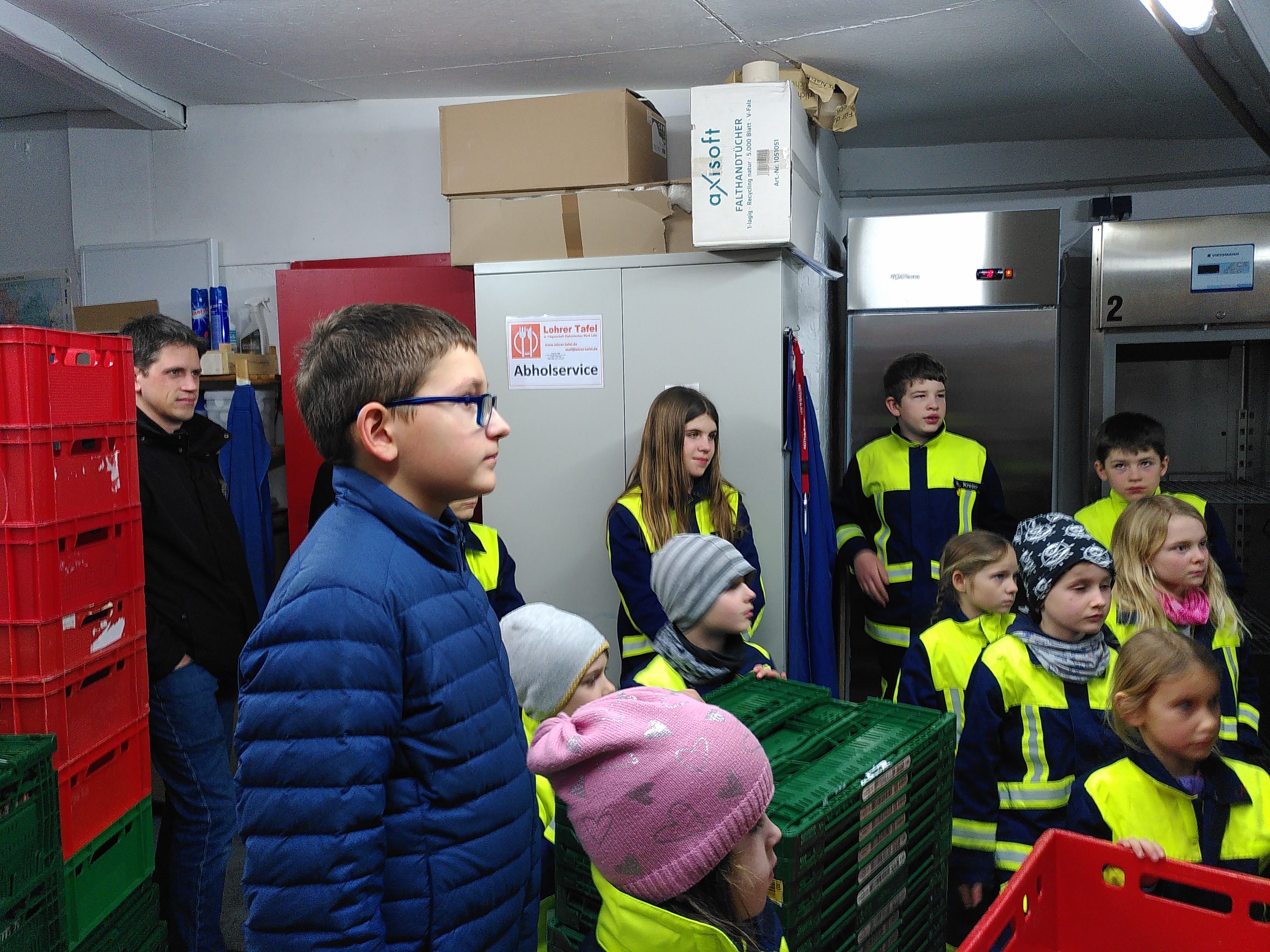 Die Kinderfeuerwehr durfte nicht nur einen Blick in den Laden werfen, sondern auch das Lager begutachten. Herr Donath erzählte uns auch noch von seinem schönsten und seinem ergreifendsten Erlebnis seit es die Lohrer Tafel gibt. Das schönste Erlebnis war ein Gedicht, das eine Klientin als Dankeschön an das ganze Team der Lohrer Tafel schrieb, da sie so dankbar für die Unterstützung war. Das ergreifendste Erlebnis waren die weinenden Frauen aus der Ukraine, die letztes Jahr auch nach Lohr kamen und die schlimmen Geschehnisse in ihrer Heimat nicht begreifen konnten. Es war ein sehr interessanter Einblick in die Arbeit der Lohrer Tafel und für viele Kinder auch neu und zunächst schwer vorstellbar, dass es auch bei uns so viele arme Menschen gibt.