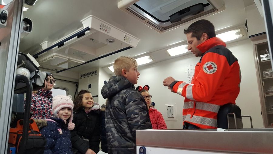 Die interessante und abwechslungsreiche Führung übernahmen Chris Braun und Johannes Seith. Nicht nur die Räumlichkeiten bekamen wir gezeigt, sondern auch einen Krankenwagen von innen durften wir bestaunen, verschiedene Untersuchungen an den Kindern wurden durchgeführt und wir konnten den Kameraden zusehen wie schnell sie bei einem realen Einsatz aus der Rettungswache abrücken. Vielen Dank an Johannes und Chris. Wir waren bestimmt nicht das letzte Mal da und könnten uns auch gut vorstellen eine gemeinsame Gruppenstunde mit dem Jugendrotkreuz zu gestalten.