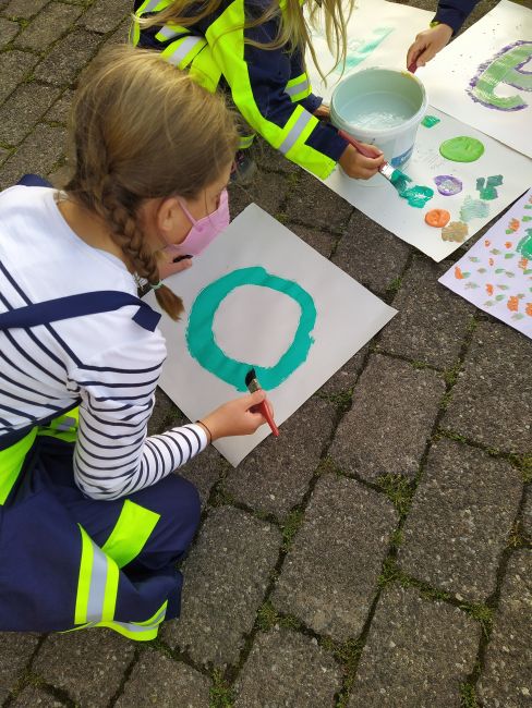 Gegen Ende der Stunde gestalteten wir noch die Buchstaben für den Schriftzug „Lohrer Lieblingsplatz“, bei dem die Feuerwehr am 02.10.2021 in der Anlage vertreten ist.