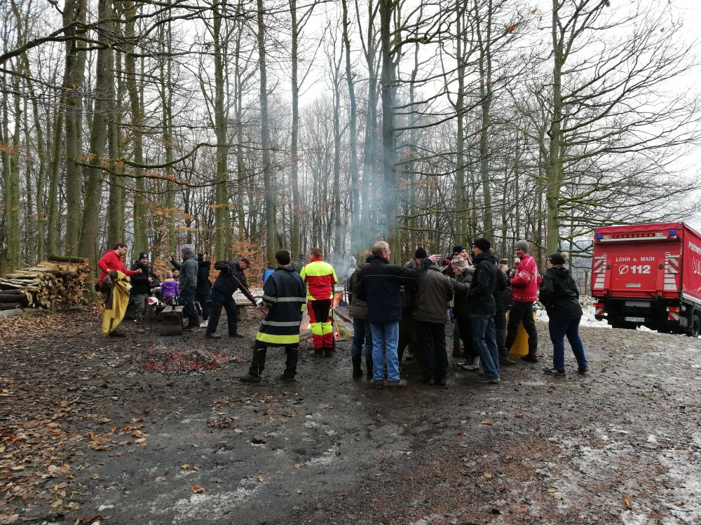 Bereits einige Tage vorher fanden sich fleißige Helfer, die ca. 70 Portionen Lackefleisch wickelten. In den Morgenstunden des 26.01.2019 wurde dann durch einige Helfer die Feuerstelle an der Beilsteinhütte hergerichtet und die Feuer entzündet.